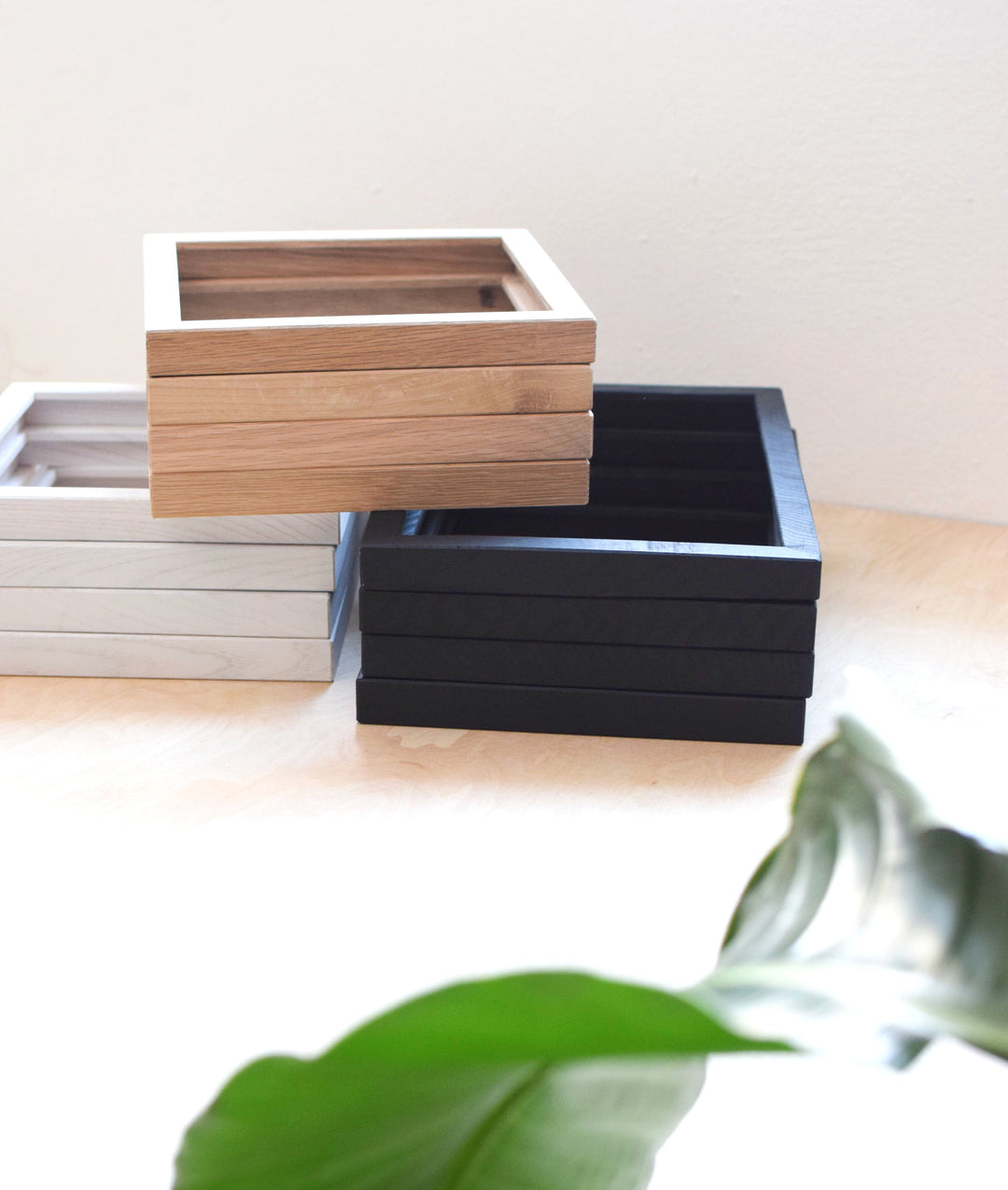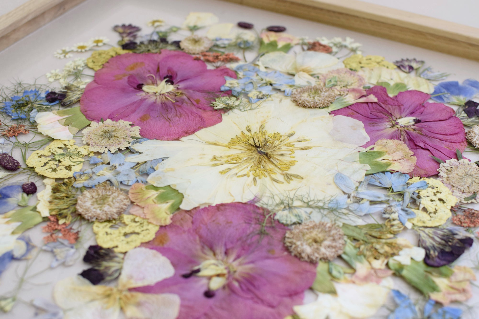 Unsere Holzrahmen werden exklusiv von einem regionalen Tischler gefertigt, aus massivem Eichenholz und in einem Design, das perfekt auf unsere Blumenkunst abgestimmt ist.